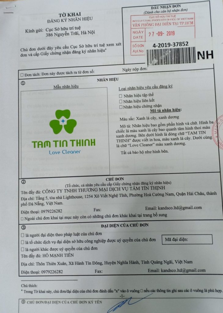 [ĐĂNG KÝ BẢO HỘ THƯƠNG HIỆU TÂM TÍN THỊNH – QUẢNG NGÃI] “??̂?: ??̂? công việc, khách hàng, đối tác. ??́?: Xây dựng ?? ??́? dựa trên sự ??? ??̂́? và tính chịu ???́?? ????̣̂?. ???̣??: Đồng hành cùng sự phát triển ???̣?? ??̛?̛̣?? của Quý khách hàng và đối tác.” Đoàn Thị Kim […]